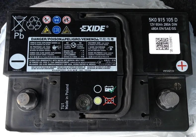 Kromě přípustné kapacity (44-82 Ah) jsou v tabulce uvedeny přípustné typy baterií: WET, EFB, AGM. Existují tvarové faktory, polarita, typ montáže a velikosti. Kromě toho jsou uvedena čísla článků pro vyhledávání „značkových“ baterií: 000915105DB, 5K0915105A, 5K0915105B, 000915105DC, 5K0915105C, 000915105EB, 1A0915105A000915105 5K0915105D, 5K0915105E, 000915105CC, 7P0915105, 000915105EC, 6R0915105B, 000915105DG, 5K0915105K5F, 0915105G000915105K000915105F, 000915105 5AE, 915105AF, 6FC, 0915105TA000915105B. Ve stejném řádku tabulky jsou katalogová čísla baterií do zavazadlového prostoru (7R0915105A, 000915105CB, 6P0915105, 000915105CC, XNUMXRXNUMXB, XNUMXEC), které výrobce dodává při montáži.