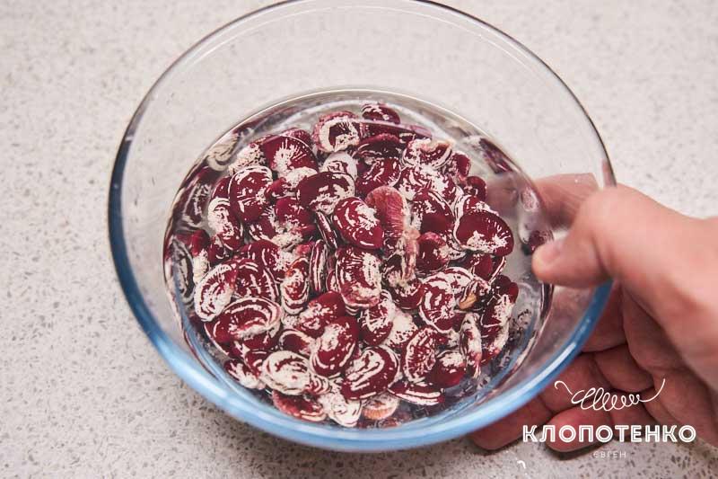 Příprava začíná namočením luštěnin ve velkém množství vody.
