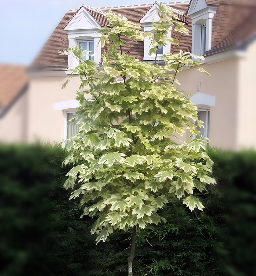 Odrůda javoru norského s panašovanými listy. Listy mají široký krémově bílý okraj, díky čemuž je strom velmi dekorativní. Výška stromu je 10-12 metrů.