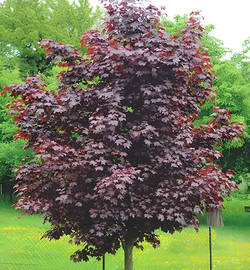Kompaktní odrůda javoru norského se zaoblenou korunou. Listy jsou tmavě fialové a zachovávají si barvu po celou sezónu. Ideální do malých zahrad a jako akcentující rostlina. Výška stromu je 4-6 metrů.