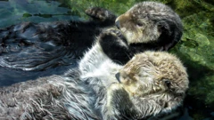 Vědci byli svědky asi 100 vyder unášených oceánem, obalených hnědými mořskými řasami – jako velký kožešinový vor.