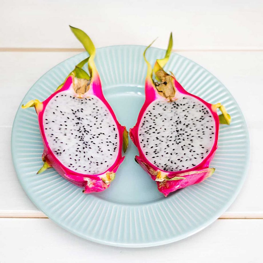 Pitahaya nebo Dračí ovoce – zajímavé vzorek tropického ovoce, které jsem sám vyzkoušel teprve před 9-10 lety. Neobvyklé jasně karmínové plody s legračními okvětními lístky mě poprvé zaujaly v ovocných stáncích na ostrově Bali. Toto je po banánech asi nejjednodušší tropické ovoce, které se loupe – rozpůlíte a jednoduše rukama nebo lžící oddělíte dužinu od husté slupky bez chuti. Kromě toho se odrůdy dodávají jak s bílou dužinou uvnitř, tak s černými semeny a s jasně malinovou, sladší dužinou. Možná je to nějaký hybrid, ale z nějakého důvodu se mi líbí méně než klasická bílá s mírnou kyselostí. To z něj dělá úžasný prostředek na uhašení žízně v horkém asijském klimatu! Je také považován za protizánětlivé a antioxidační činidlo. Slyšel jsem, že existuje také žlutá odrůda pitahaya, ale z nějakého důvodu jsem ji na trzích neviděl. I když konkrétně jsem to nehledal.