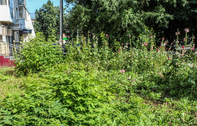 Stejně jako v případě Meždurečensku jsme se rozhodli projít se po centrální části města, aniž bychom zacházeli do divočiny a odlehlých dvorků: pouze veřejná prostranství, náměstí, ulice. První vysokou trávu jsme našli téměř okamžitě – poblíž Divadla pro děti a mládež, které se nachází 300 metrů z vedení města.